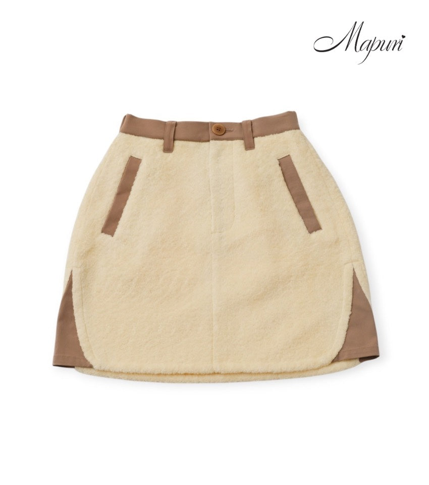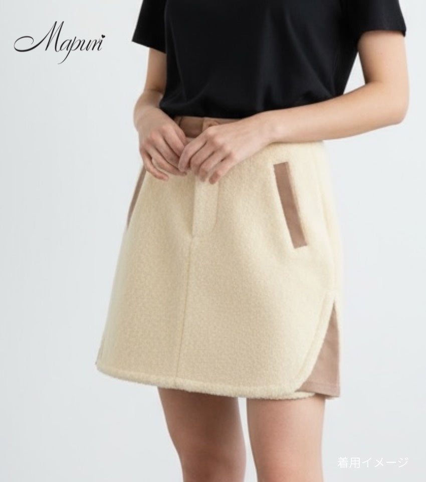 上質感のあるモコモコ素材を使い、PLAYシーンまでビューティー&キュートな見栄えのあるスカートを提案。オフホワイトにベージュ